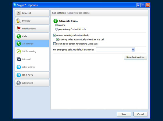 Click tools>>options>>call and click the button saying “show advanced options” in the next window, check the boxes labeled “answer incoming calls automatically” and “start my video automatically when I am in a call”. Hit “save” and you’re done!